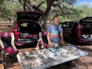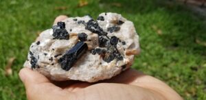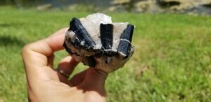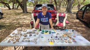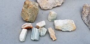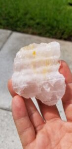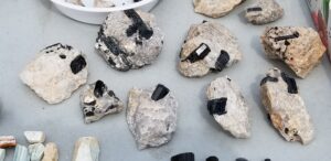 Shir-Lee said the following about the trip: “I want to thank everyone in the picture and all others that attended who helped make such a great successful field trip for all! Two days of digging bliss! Buckets and buckets of Rose Quartz, Clear Quartz, Smoky Quartz, Aquamarine Beryl, and congratulations to those that found Aqua. A big find was a Huge Rose Quartz, extremely clear and of facetable material, and worth a nice sum of money!!! And not for sale!!! Everyone dug to their best ability. Some created small caves where others dug along the side banks. Some brought home rocks that were so large that they required extra care and extra help to get them out.This is where the guides really helped. They not only helped to dig, identify and educate us on Hogg Mine, but their goal was, if we wanted it, they would help us get it. The guides were instrumental in our club having such a great time and successful dig!!! Again thank you so much for attending. Spread the word and hopefully I can organize another successful field trip in the fall to Hogg Mine. If you have any questions or would like to attend please reach out to me at anytime.”