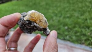 hours drive from Penn Station in Newark, NJ and is best known for the fluorescent minerals found there. In the short time available to her, Gale found a number of fluorescent specimens. She demonstrated how the specimens come to life under the short wave UV light. Gale also explained the different types of UV lights available and how you need a short-wave or UVC light for fluorescent minerals*. Below are some photos Gale took while at the museum