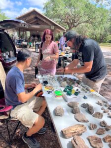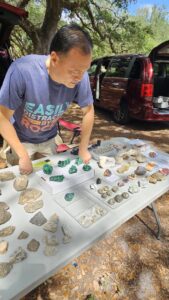 Club member Alan Meltzer presented his extensive collection of agate, petrified wood and dinosaur bone at the May 2018 membership meeting. He also set up a field trip on June 9th 2018 of his complete collection. Lee Miller, club president said the following about the meeting and field trip: “At the May General meeting, Jennifer Martin, our 2nd Vice-President and program coordinator, arranged for a presentation by Alan Meltzer who wowed us with some of his collection of petrified wood from around the world. The pieces he brought for show and the video of even more, including pictures of dinosaur bone were an astounding display of gem grade fossils that few of us had ever seen. Also, just a couple days ago, we were all invited to view some of his collection of agate, petrified wood and dinosaur bone on display. Those of us who attended were treated to a collection of museum quality examples of lapidary treasure that will not be forgotten. Thanks Alan! And a big “Thank You” to Jennifer for the great work she has done in arranging for the presentations and field trips that have kept us coming back for more for the last few years!”