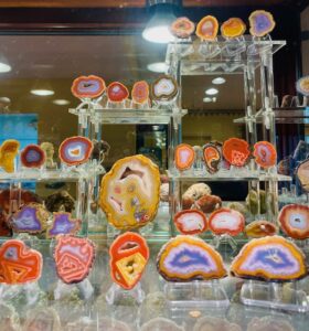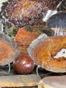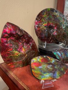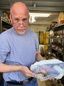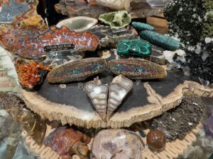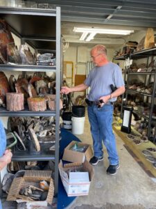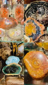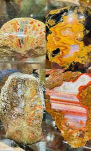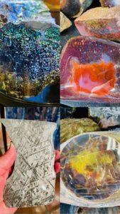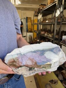 Club member Alan Meltzer presented his  extensive collection of agate, petrified wood and dinosaur bone at the May 2018 membership meeting. He also set up a field trip on June 9th 2018 of his complete collection. Lee Miller, club president said the following about the meeting and field trip: “At the May General meeting, Jennifer Martin, our 2nd Vice-President and program coordinator, arranged for a presentation by Alan Meltzer who wowed us with some of his collection of petrified wood from around the world. The pieces he brought for show and the video of even more, including pictures of dinosaur bone were an astounding display of gem grade fossils that few of us had ever seen. Also, just a couple days ago, we were all invited to view some of his collection of agate, petrified wood and dinosaur bone on display. Those of us who attended were treated to a collection of museum quality examples of lapidary treasure that will not be forgotten. Thanks Alan! And a big “Thank You” to Jennifer for the great work she has done in arranging for the presentations and field trips that have kept us coming back for more for the last few years!”   * UVA or long-wave is 315-400 nm, UVB or medium-wave is 280-315 nm and UVC or short -wave is 100-280 nm. You should wear eye protection when using UVC.